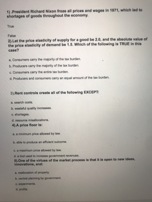 Solved 1 President Richard Nixon Froze All Prices And Wa Chegg Com