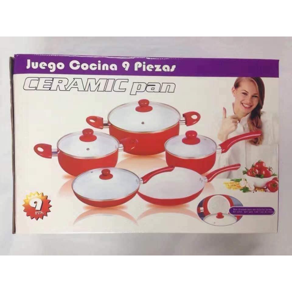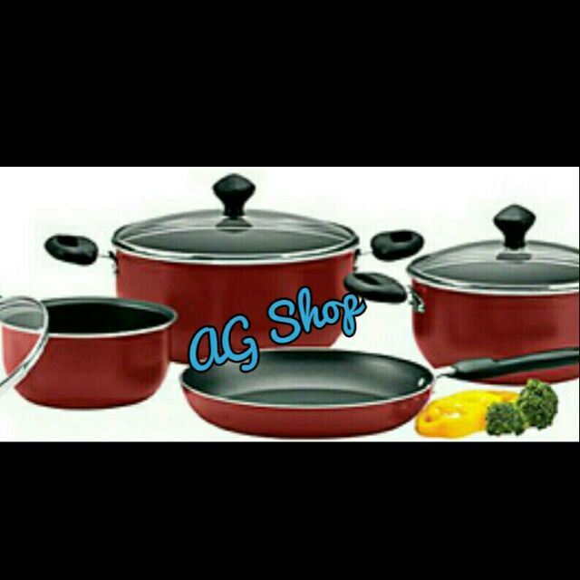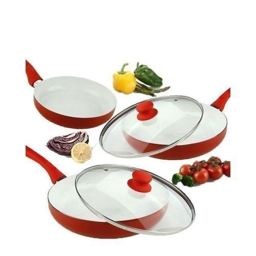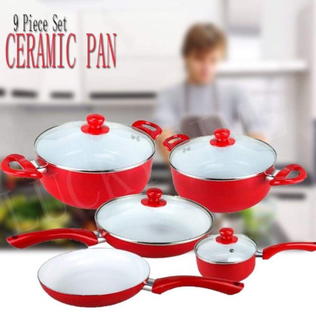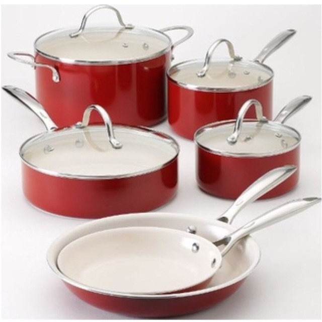 As seen on tv migas red 5pcs non stick ceramic pan set 3 pans and 2 glass cover 1 399 00.