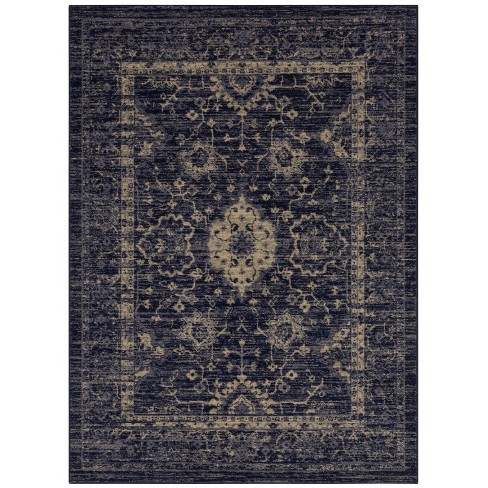 Amazon Com Abani Navy Beige Vintage 4 X 6 Area Rug Babylon Collection Turkish Oriental Medallion Distressed Accent Rug Rugs Furniture Decor